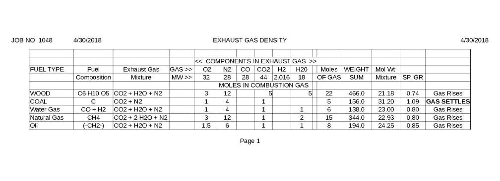 This table is provided to show calculations used to calculate density of exhaust gas from different fuels.